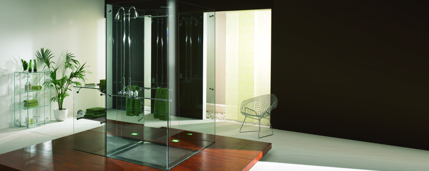 Für enge Bäder eignen sich besonders unsere Schiebebeschläge für Ganzglasduschen als Nischenlösung oder für Duschen mit Eckeinstieg.